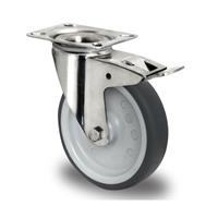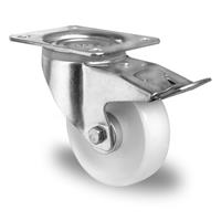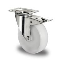 Edelstahl-Transportgeräterollen mit Polyamidrad, Gleitlager und Totalfeststeller